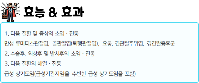 이 의약품은 염증을 완화시키고, 통증을 해소하는 약이니 참고하시길 바랍니다.