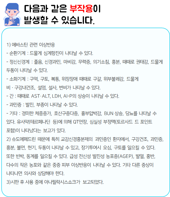 슈도에페드린염산염 120mg, 에바스틴 10mg