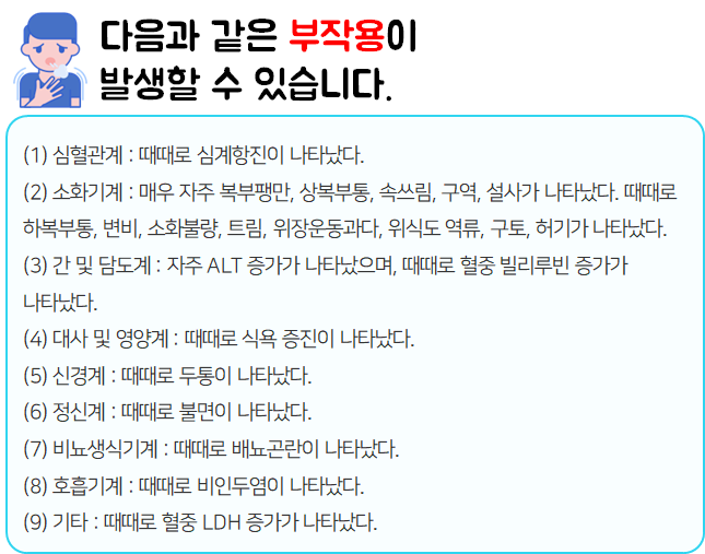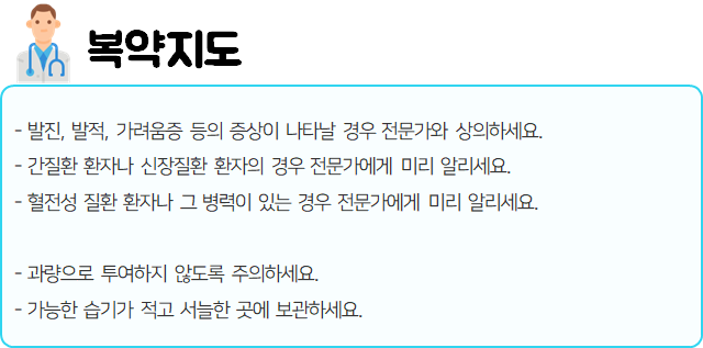 의약품의 경우에 아래 내용을 꼼꼼하게 확인하신 후에 복용(사용)하셔야 이상반응 및 부작용을 최소화 하실수 있습니다.