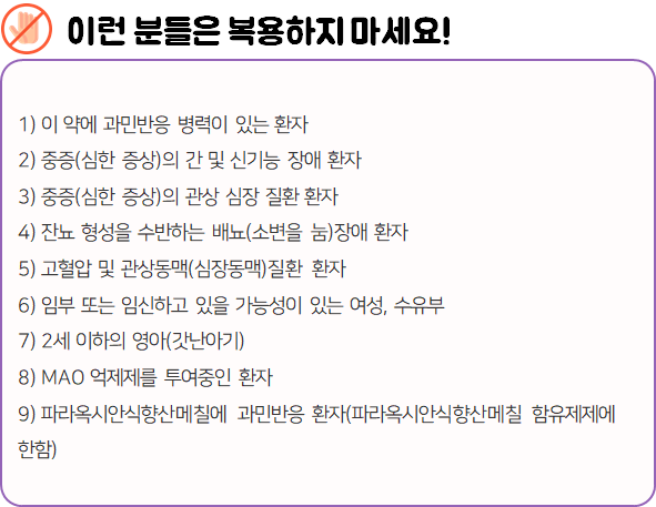 의약품의 경우 아래 내용을 꼼꼼하게 확인하신 후에 복용(사용)하셔야 이상반응 및 부작용을 최소화하실 수 있습니다.