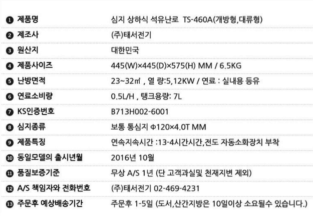 등유 난로의 경우 사고로 난로가 넘어졌을 시 화재로 이어질 위험이 있는데 TS-460A는 전도 자동소화장치가 부착되어 있어 본체가 흔들리거나 난로가 쓰러졌을 때 자동으로 전원이 차단되어 안전하게 사용할 수 있습니다.